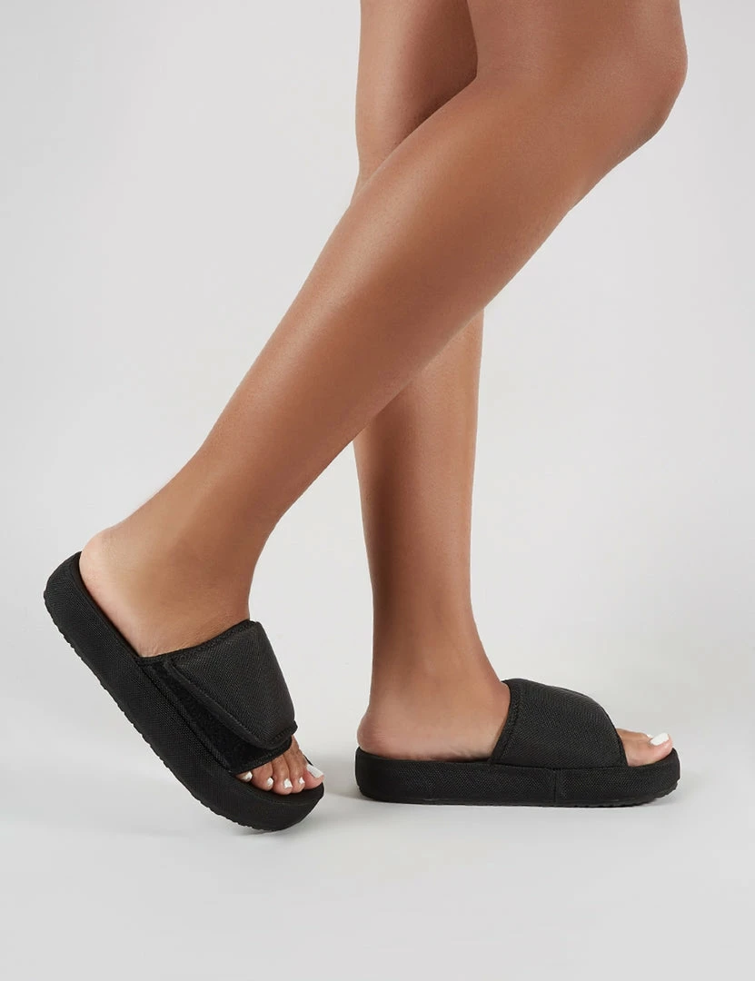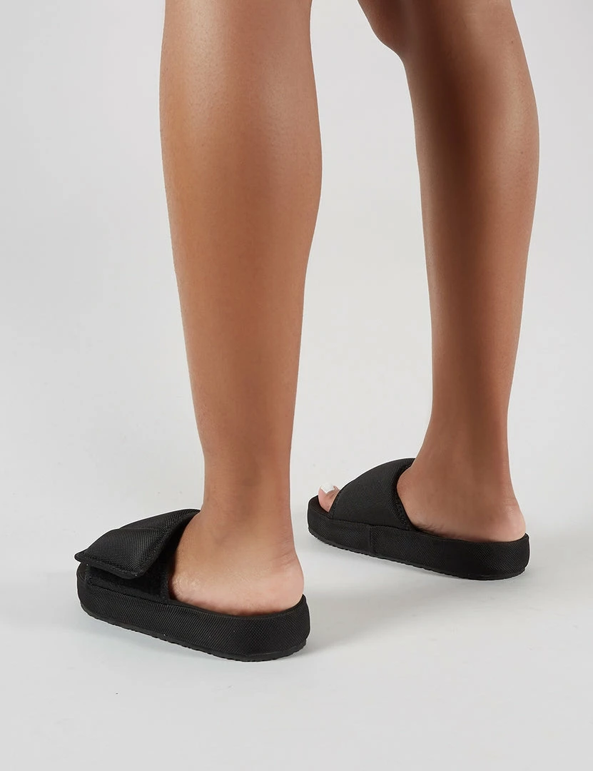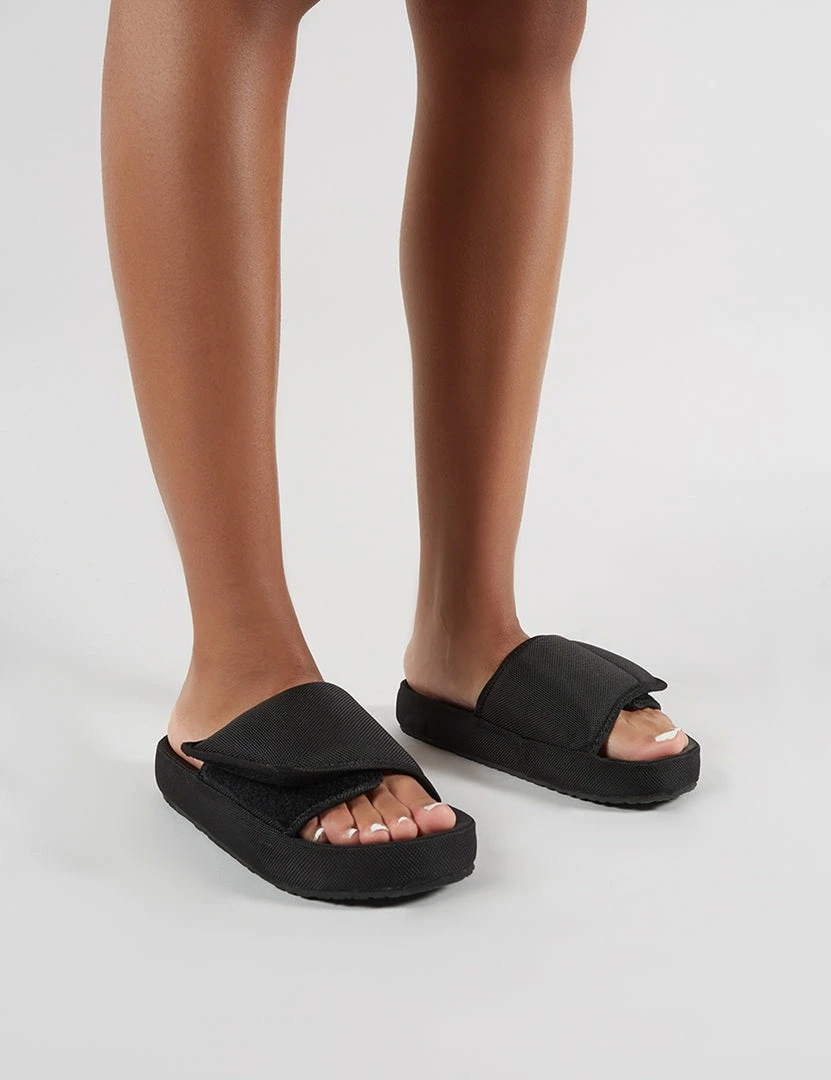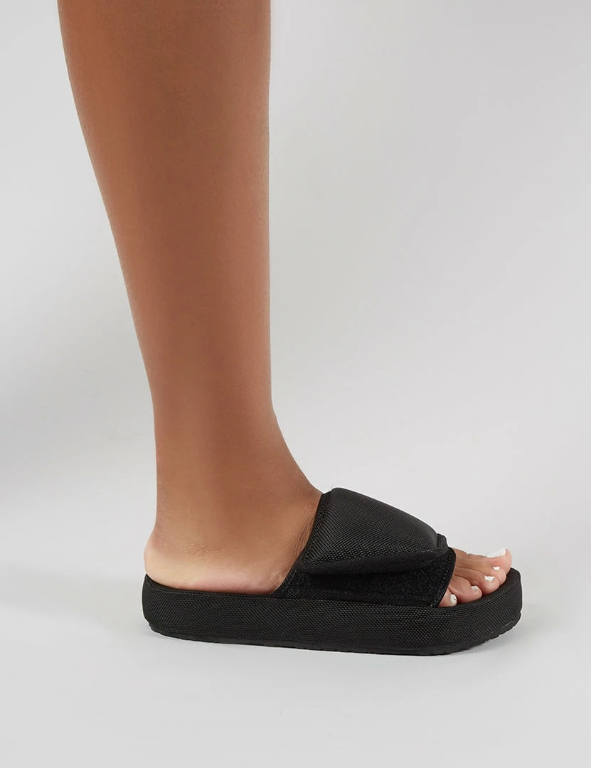 Get that off duty sass. Featuring an open toe and fabric velcro adjustable upper. Pair ’em with an oversized jumper dress and statement belt.