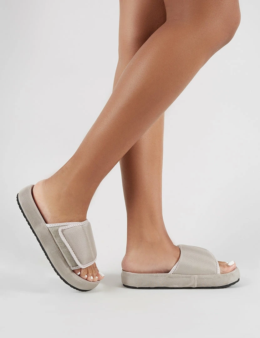Get that off duty sass. Featuring an open toe and fabric velcro adjustable upper. Pair ’em with an oversized jumper dress and statement belt.