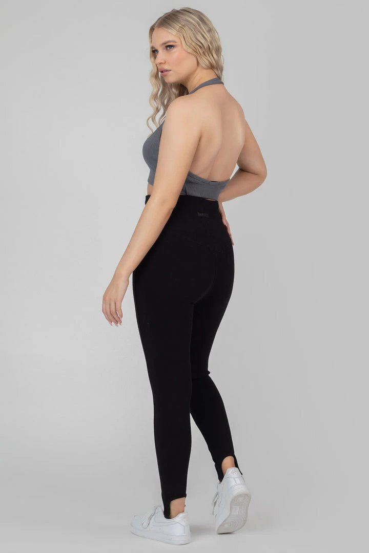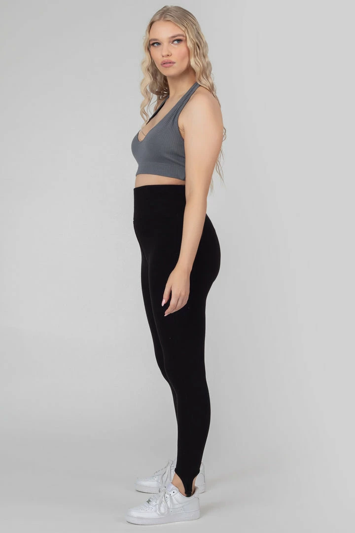 Thick rib high waisted leggings in black with a stirrup design.