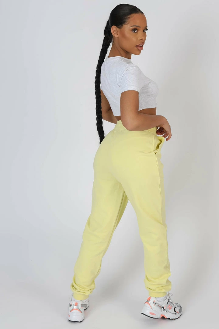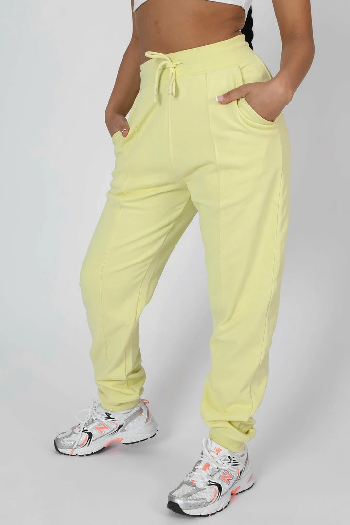 OVERSIZED FIT SEAM FRONT 90S STYLE HIGH WAISTED JOGGERS IN LEMON.