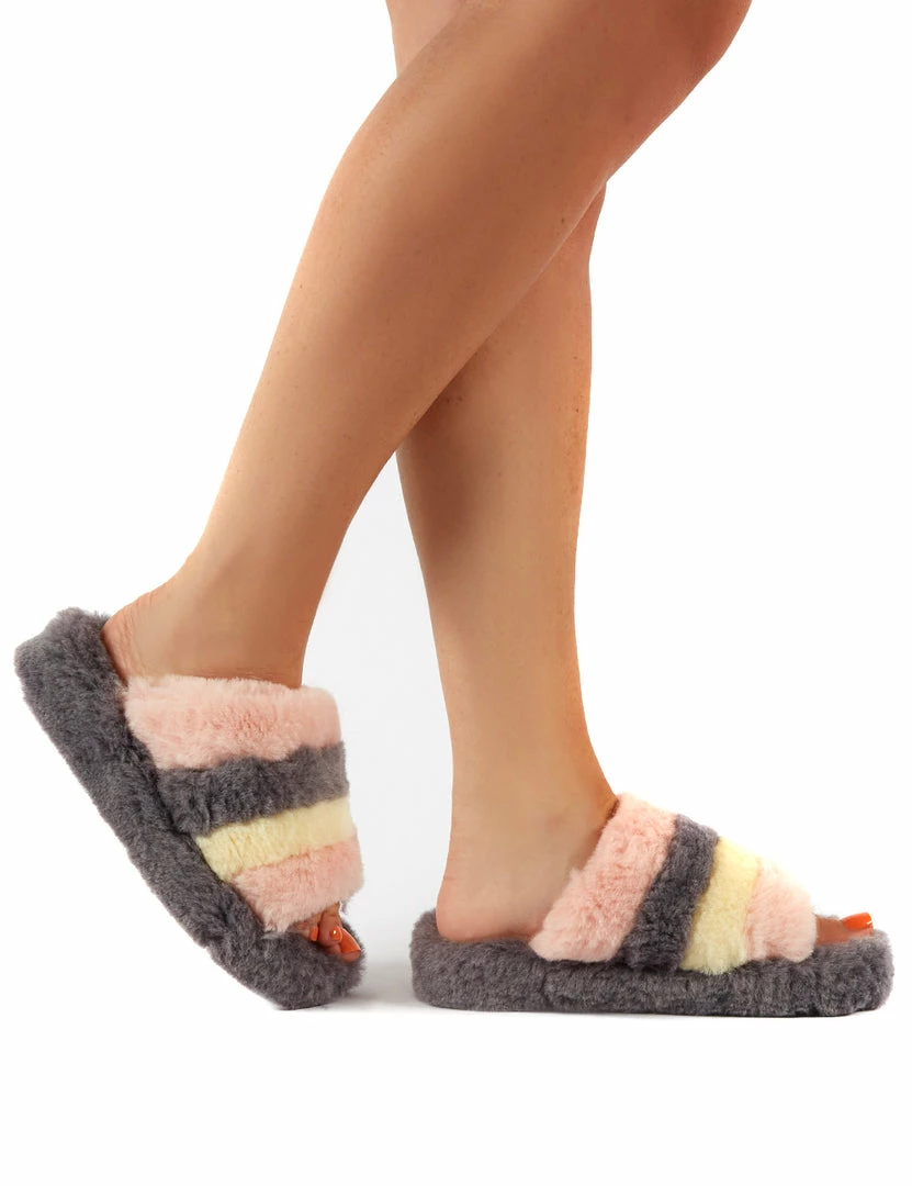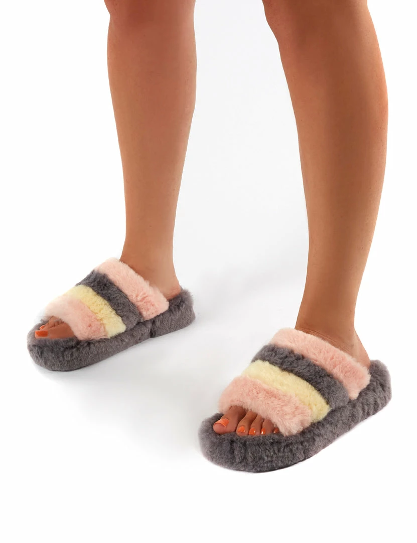 When staying home is the new going out.. We got you babe! Sleepy features faux fur fluffy material. Pair these slippers with your fave loungewear to complete the look.