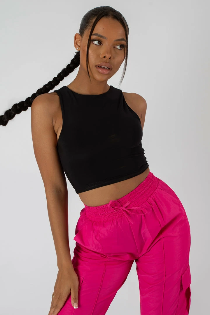 A SLINKY SOFT TOUCH RACER TOP. THE ULTIMATE WARDROBE MUST HAVE STYLE.