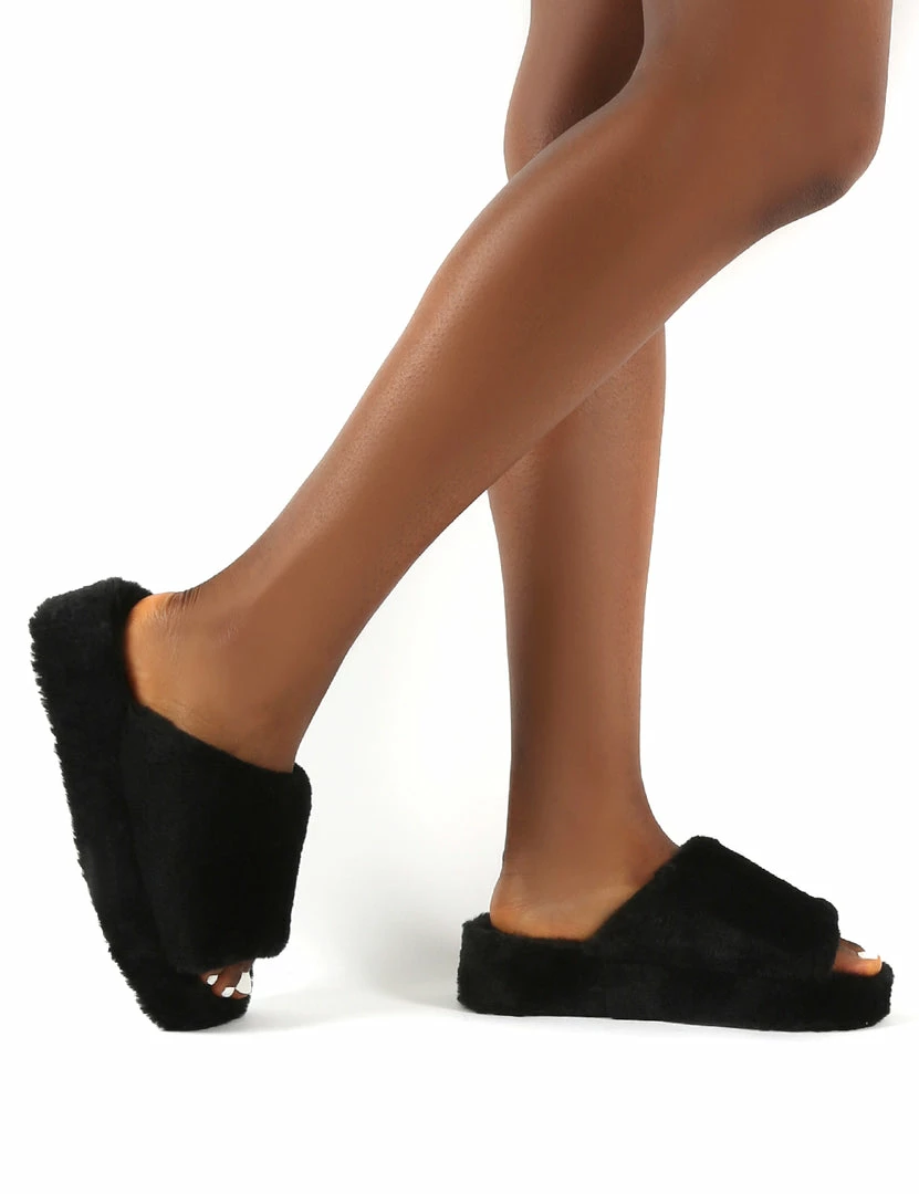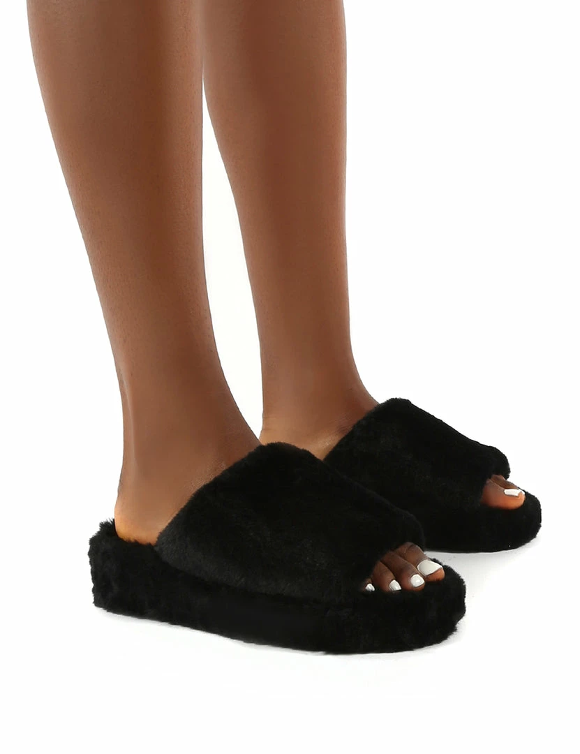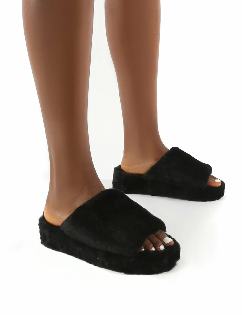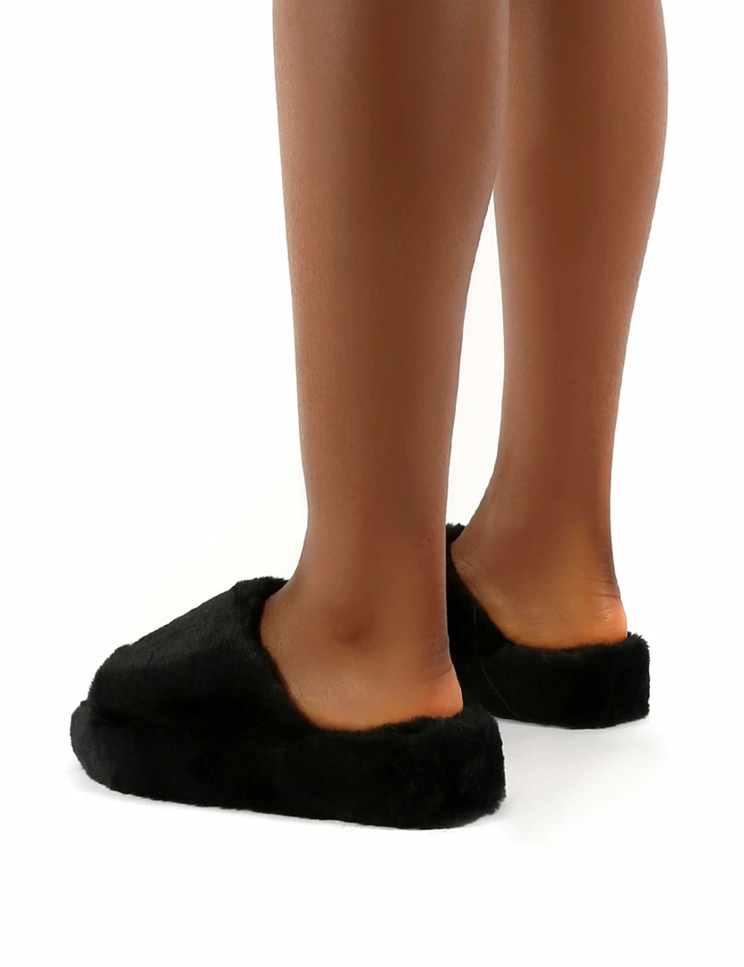 Snoozie features a chunky platform sole and faux fur upper. Team these with your fave pair of PJs to complete the look.