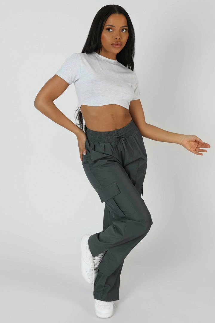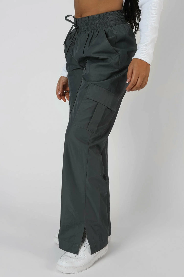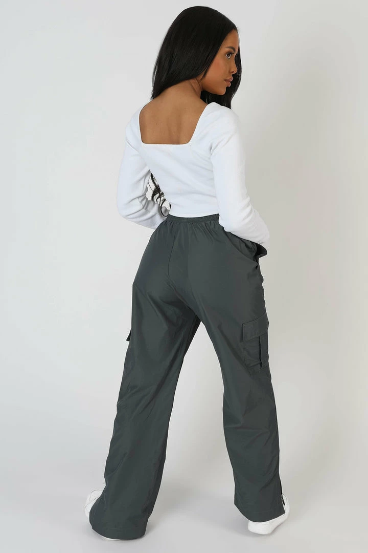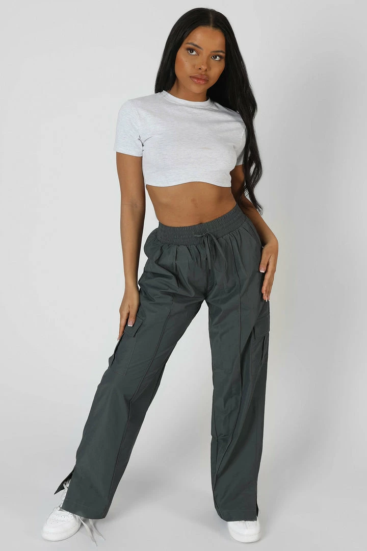 WIDE LEG CARGO STYLEÂ TROUSERS IN GREY FEATURING SPLIT HEMS AND A DRAW STRING WAIST.