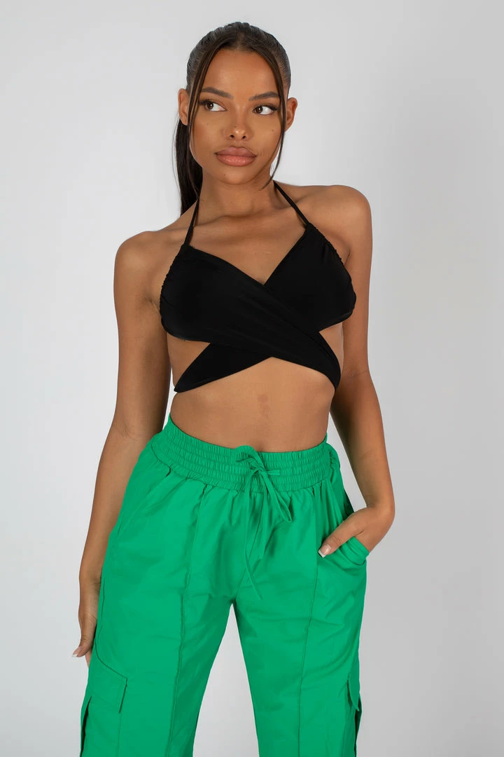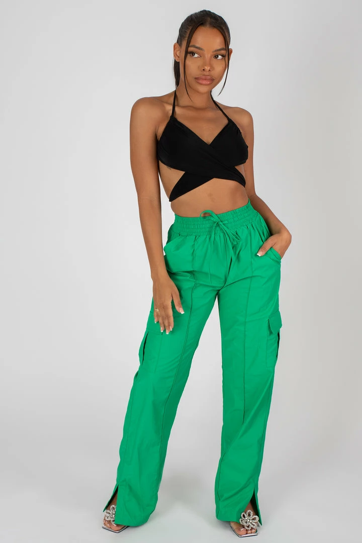 OUR ICONIC HIGH WAISTED ELASTICATED WAIST SPLIT HEM CARGOS NOW IN GREEN