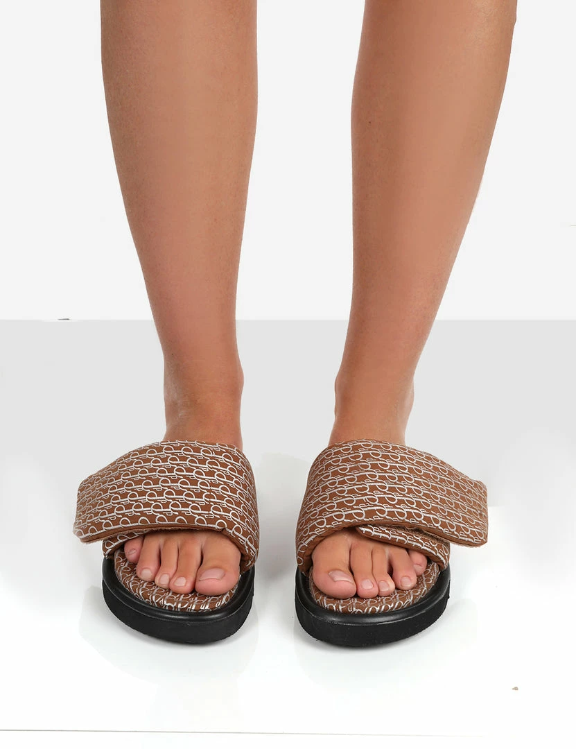 These Sweeter Brown Flatform sliders feature padded front and are adjustable with velcro Designed for optimum comfort, perfect for by the pool or casual summer days.