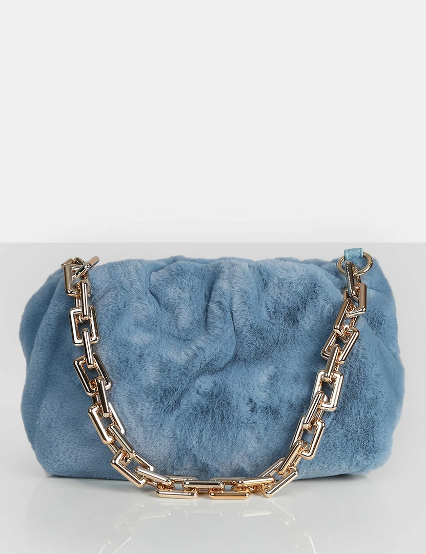 Public Desire UK The Bracken Blue Faux Fur Chain Handbag