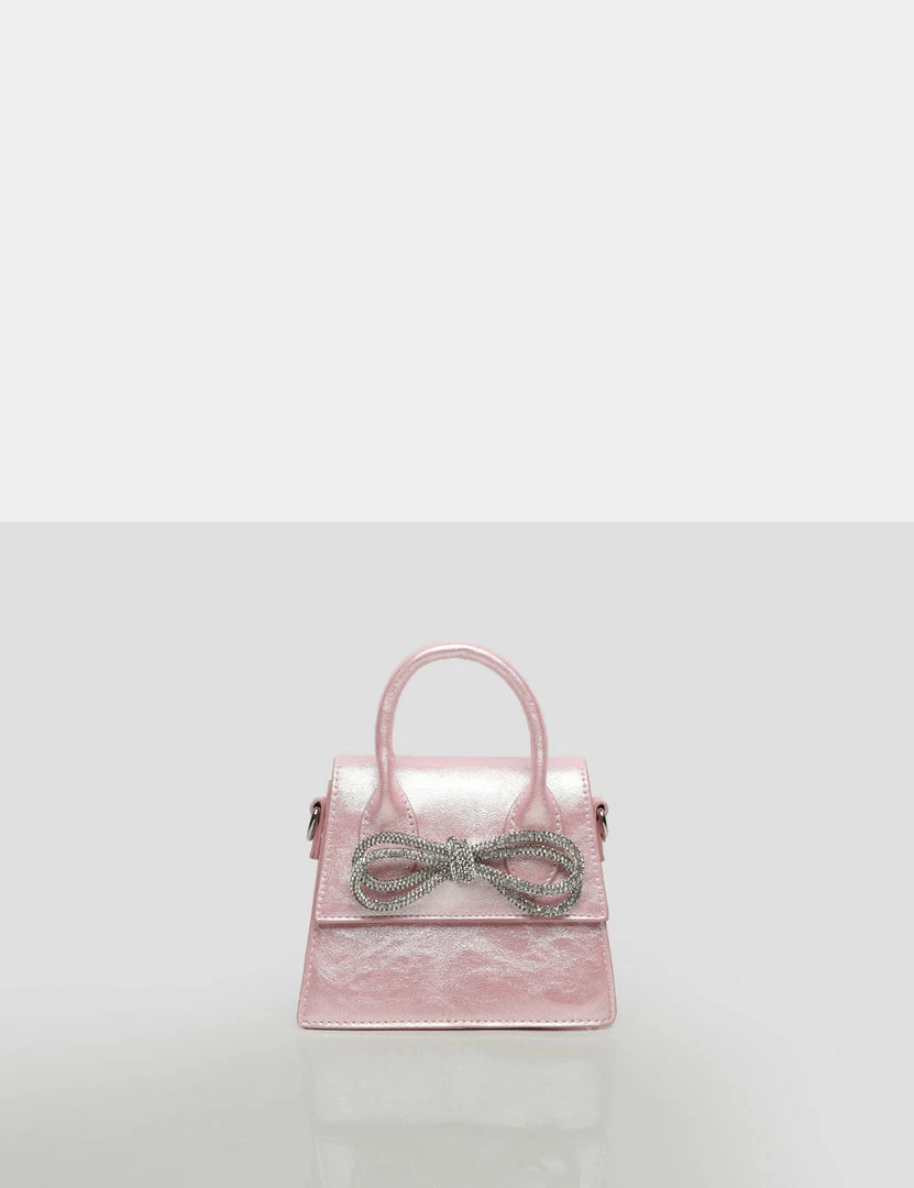 Public Desire UK The Indy Pink Pu Diamante Bow Mini Bag NEW IN