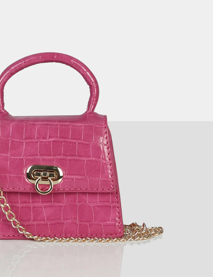 Get ready to stun with Lilly our brand new mini bag in fuchsia featuring a clip on gold shoulder chain. This beaut croc small bag is a must have this season and will elevate you looks. Mini handbags are a must, don’t miss out…