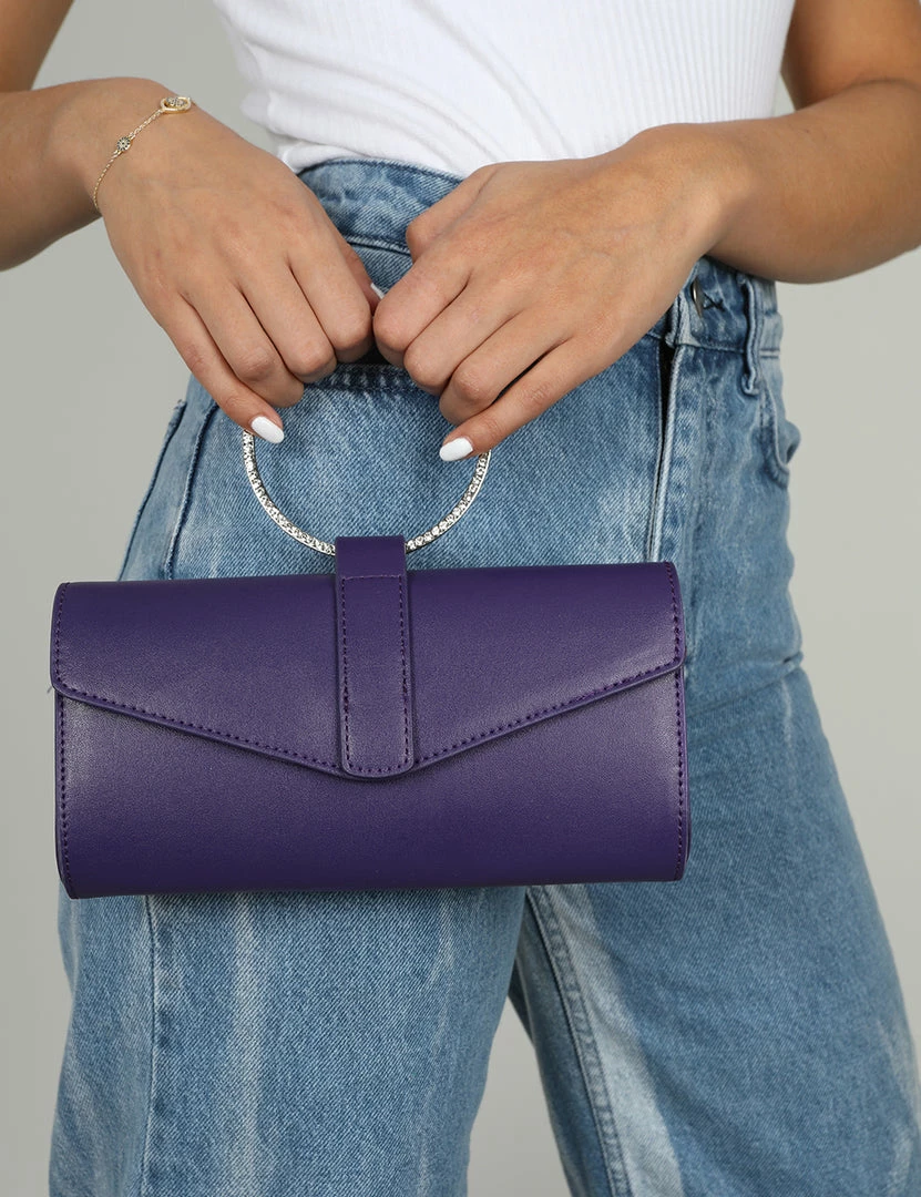 Public Desire UK The Pammy Purple Pu Diamante Handle Envelope Clutch