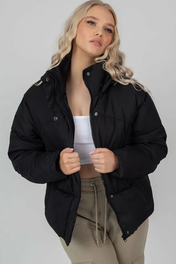 Stay warm this Autumn with the ultimate puffer jacket featuring a high neck and zip fastening in black.