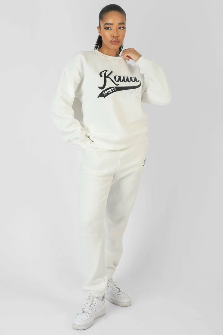 OVERSIZED FIT JOGGERS IN ECRU WITH VARSITY STYLE KAIIA BRANDING