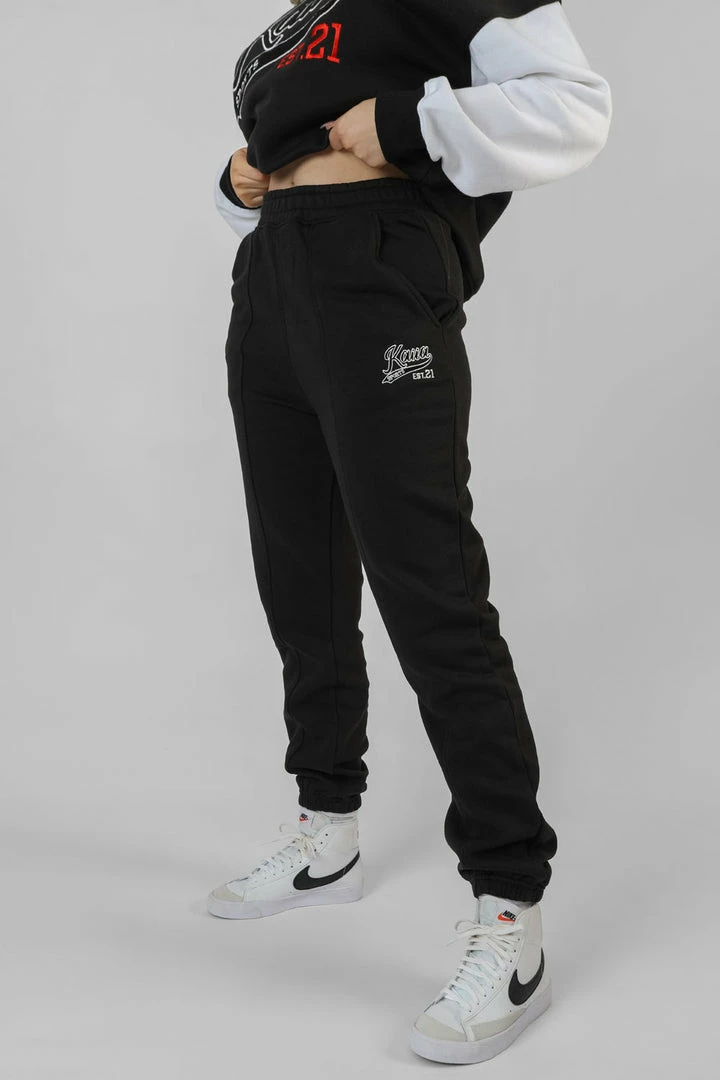 OVERSIZED FIT BLACK JOGGERS WITH VARSITY STYLE KAIIA BRANDING AND SEAM FRONT DETAILING