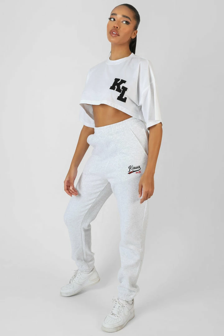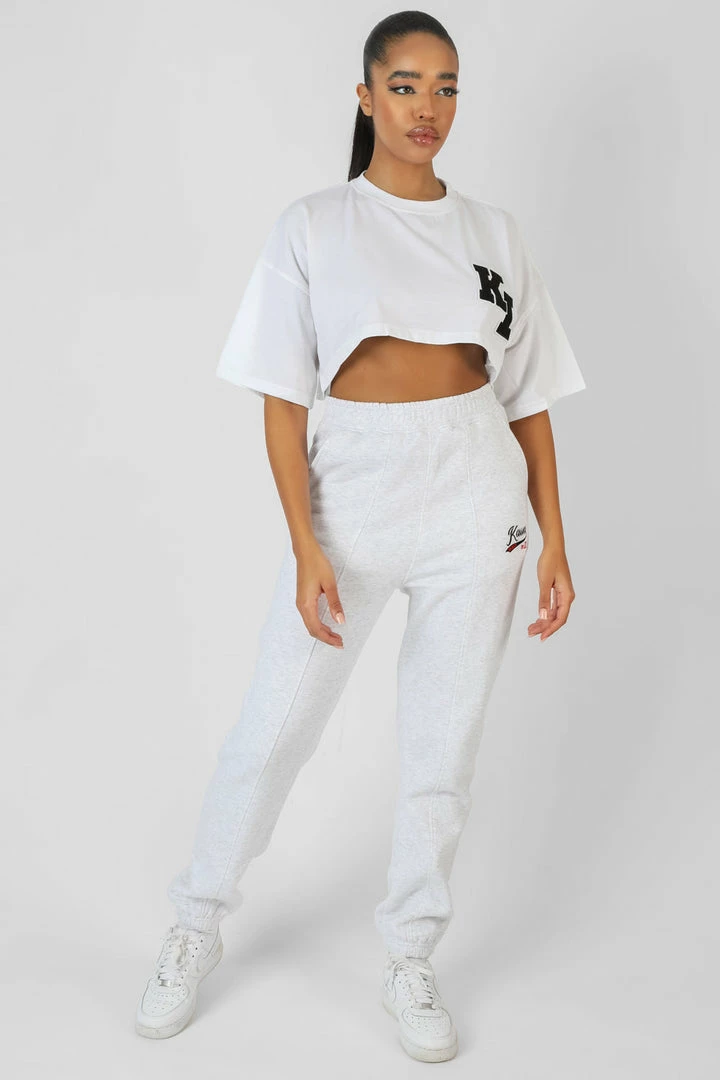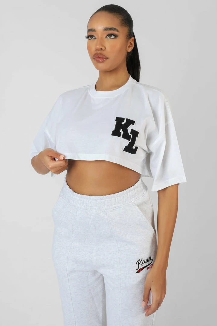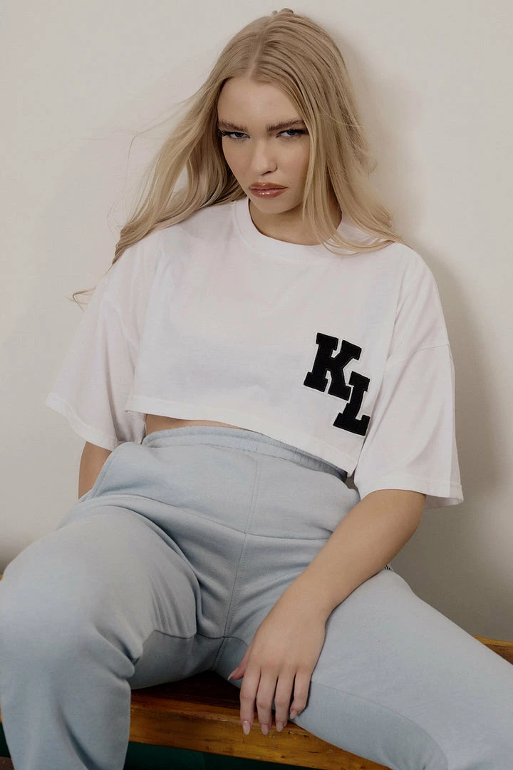 A SUPER CROPPED WHITE T-SHIRT WITH DECORATE PATCHES