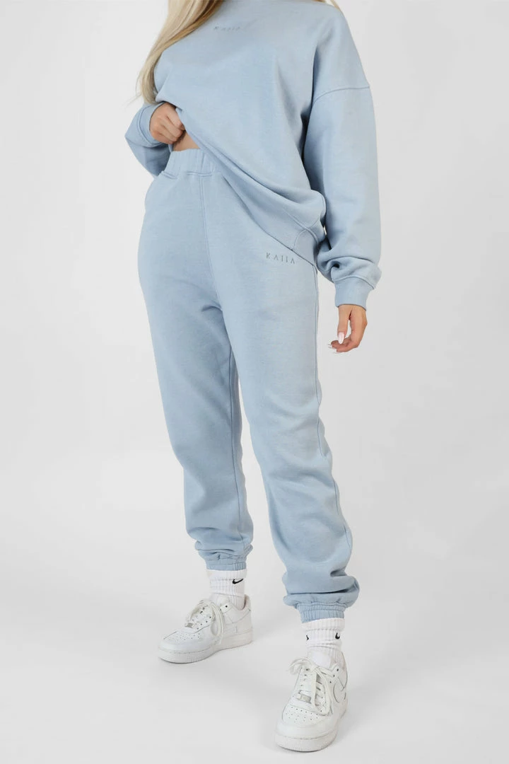 OVERSIZED FIT 90S STYLE JOGGERS IN WASHED BLUE. LOOKS LIKE A PALE OR BABY BLUE.